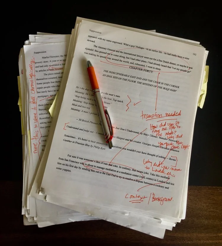 - Extensive page notes, including editing suggestions, margin comments and questions